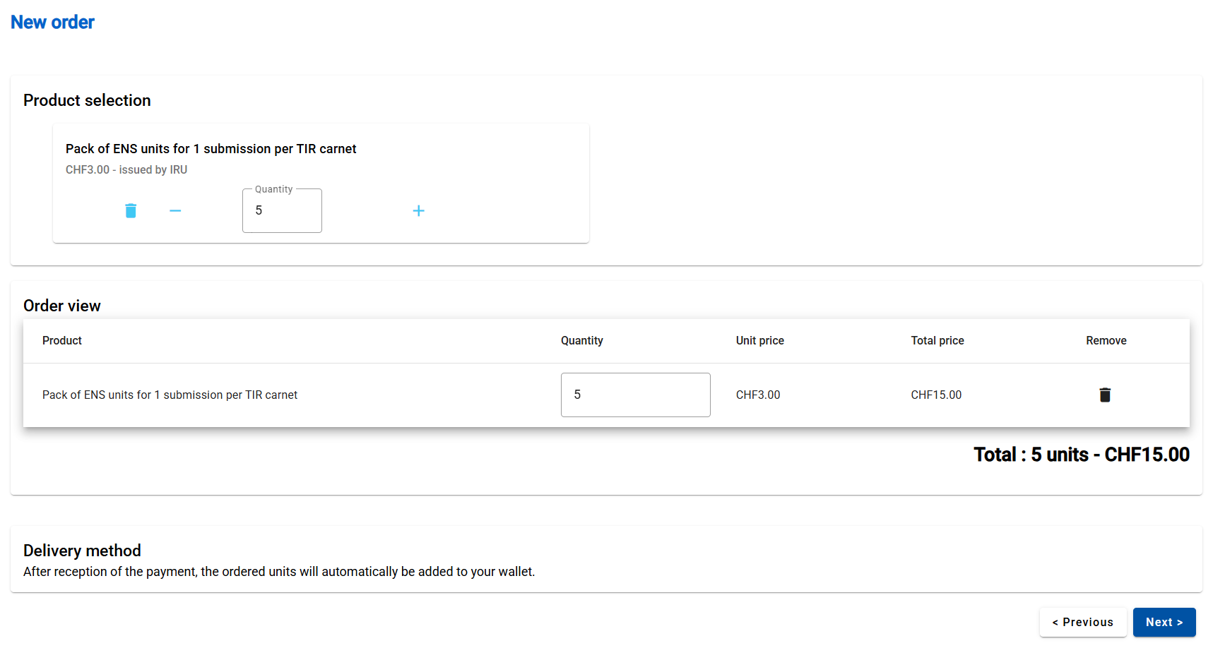 Для подачі ENS через TIR-EPD користувачі мають придбати одиниці ENS (ENS unit) – платні одиниці, необхідні для подачі декларації ENS.